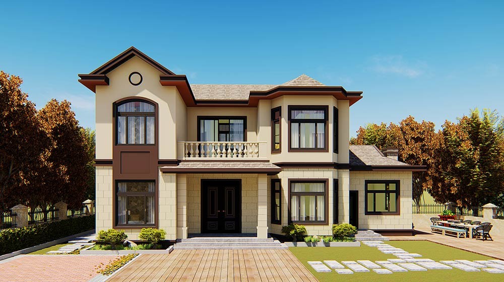 Diese Villa ist nicht nur einfach und elegant, sondern auch eine Sammlung der Essenz verschiedener Gebäude und einen einzigartigen Stil, der die Eigenschaften der Einfachheit und Leichtigkeit vollständig widerspiegelt.Die Fenster und Fensterrahmen sind sorgfältig vom Konstrukteur entworfenEine Küche ist auf der rechten Seite des ersten Stockwerks entworfen, um Lampenblack abzulassen, zu belüften und zu erleichtern.