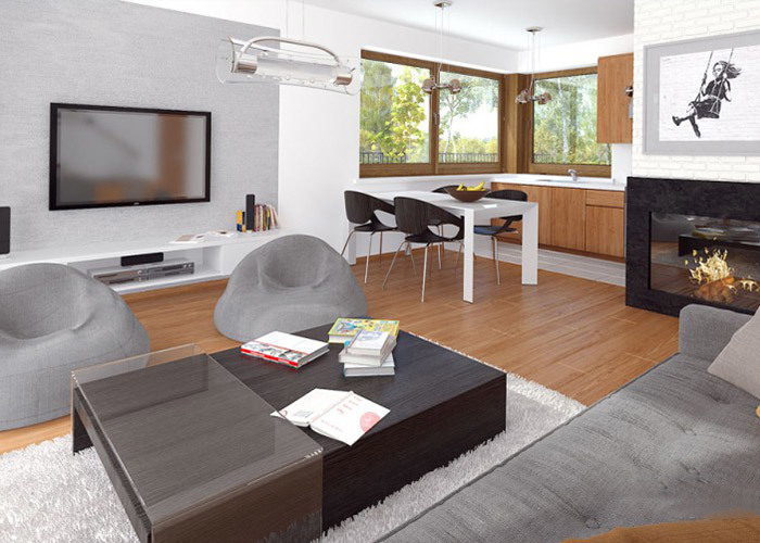 Zwei Etagen mit intelligentem Design Die Grundfläche des Hauses ist fachmännisch auf zwei Ebenen verteilt:
