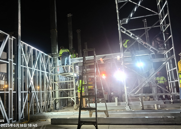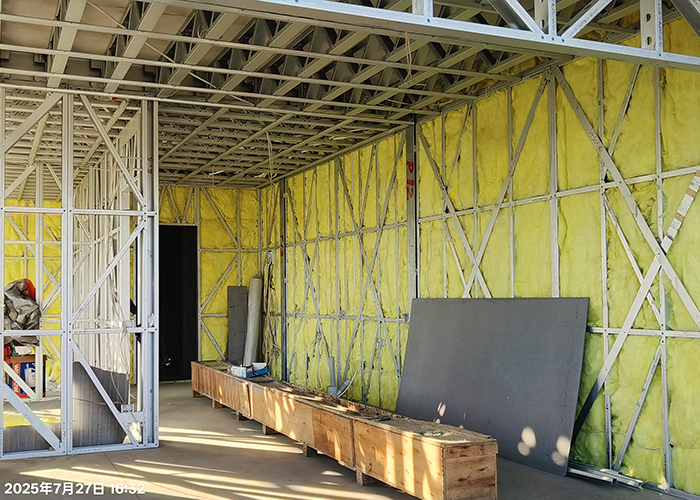 Nachdem das Design fertiggestellt war, begann die Produktion in der fortschrittlichen Fertigungsanlage von DEEPBLUE SMARTHOUSE in China. Mit unserer charakteristischen Leichtstahlrahmen-Technologie fertigten wir alle Hauptkomponenten, einschließlich der Struktur, Wände, Dachsysteme und Dämmplatten. Dieser vorgefertigte Ansatz garantiert nicht nur hohe Präzision und gleichbleibende Qualität, sondern verkürzt auch die Bauzeit vor Ort erheblich.