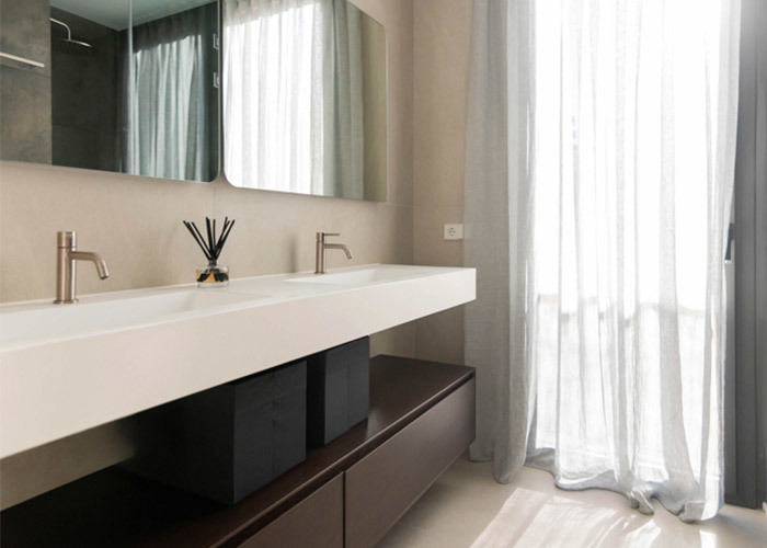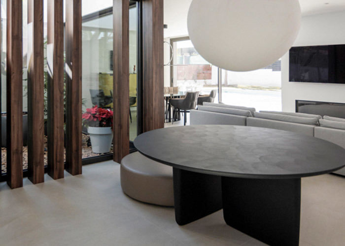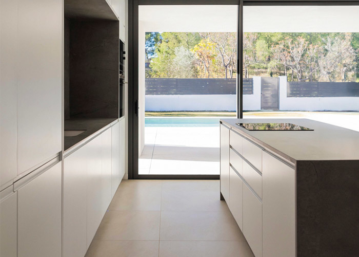 Bei der Ankunft lädt eine einladende Terrasse von über 30 Quadratmetern zum Entspannen und Unterhalten vor einer eleganten architektonischen Kulisse ein. Im Inneren fließt ein heller und weitläufiger Wohnbereich mühelos in einen offenen Essbereich und eine moderne Küche über und schafft so die ideale Umgebung für den Alltag und Zusammenkünfte.