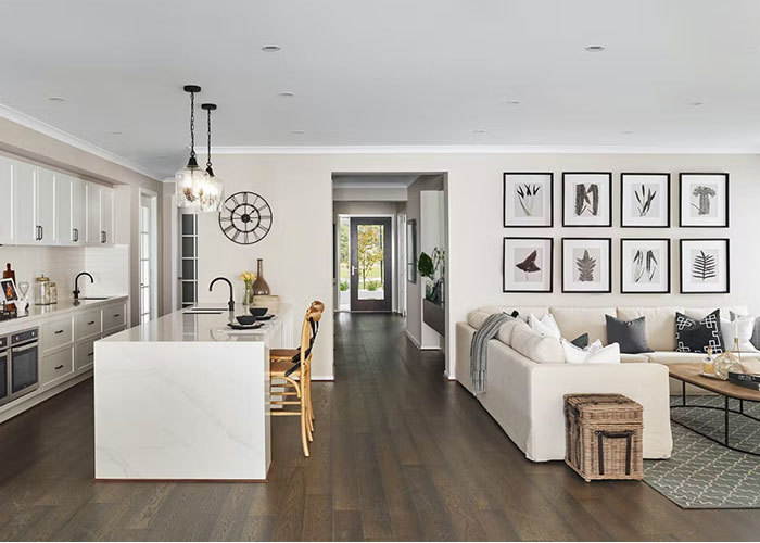 Das Wohnzimmer ist im hinteren Teil des Hauses für zusätzliche Ruhe versteckt und bietet einen separaten, gemütlichen Rückzugsort für Entspannung und Familienzeit.eine bequeme Zwei-Autos-Garage befindet sich auf der rechten Seite des Grundstücks.